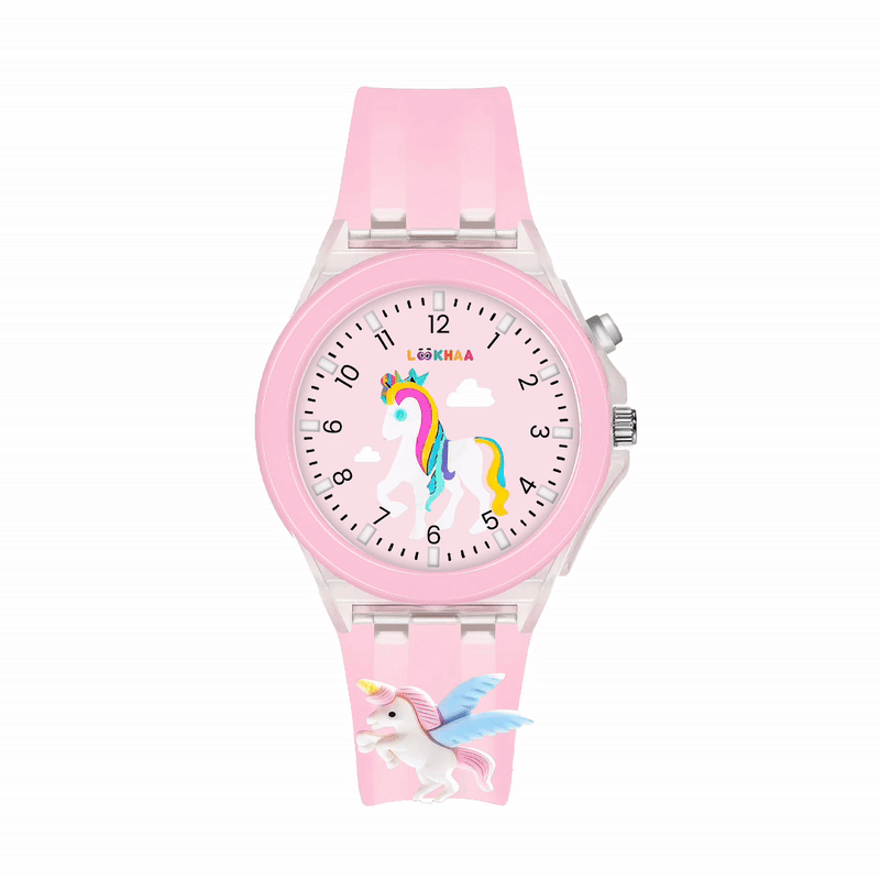 Lookhaa 3D Cute Unicorn Cartoon Watch with 7 Disco Lights Analog Watch for Girls - Pink