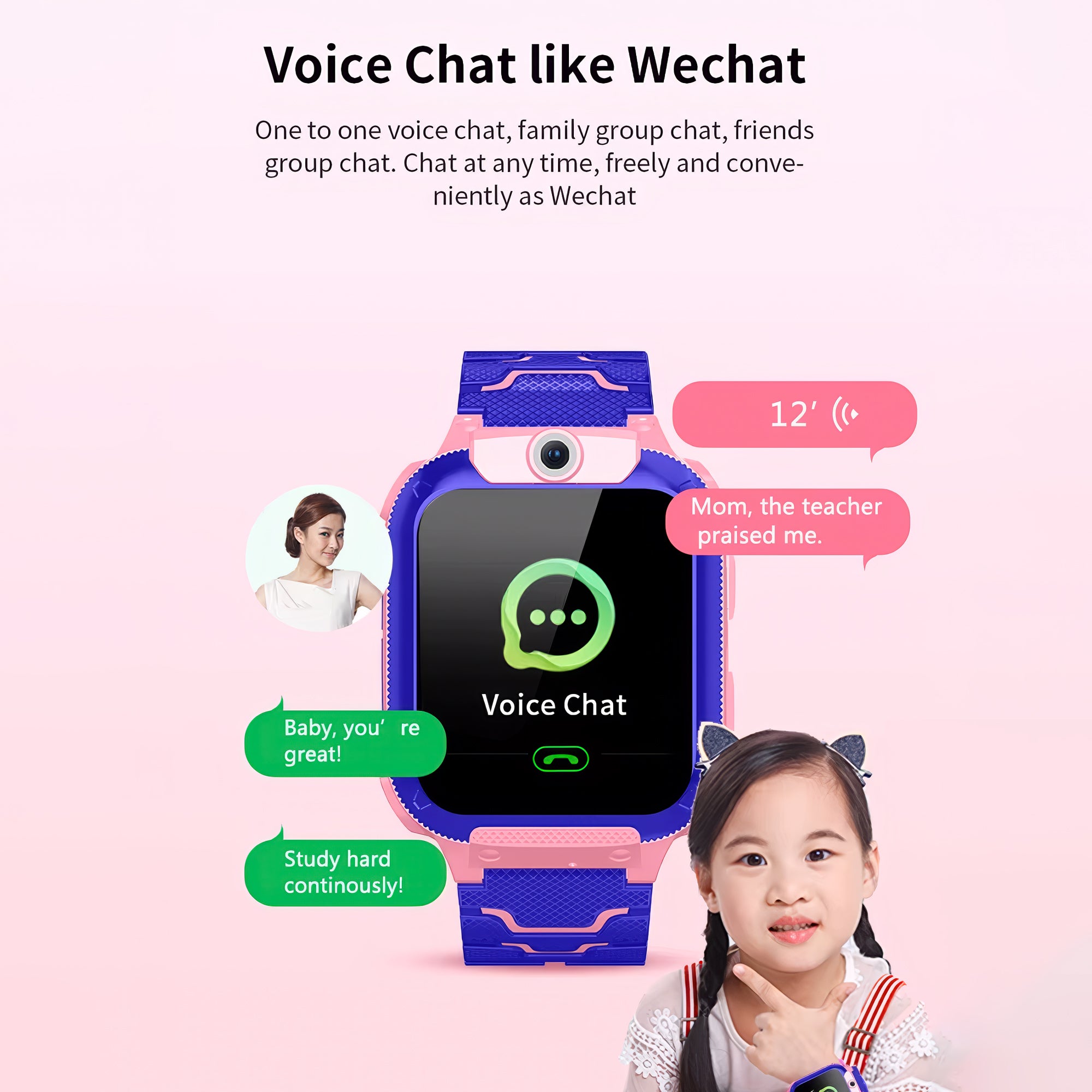 [Voice Chat]: The smartwatch is capable of sending and receiving voice messages, useful when child or parent can't make phone call.