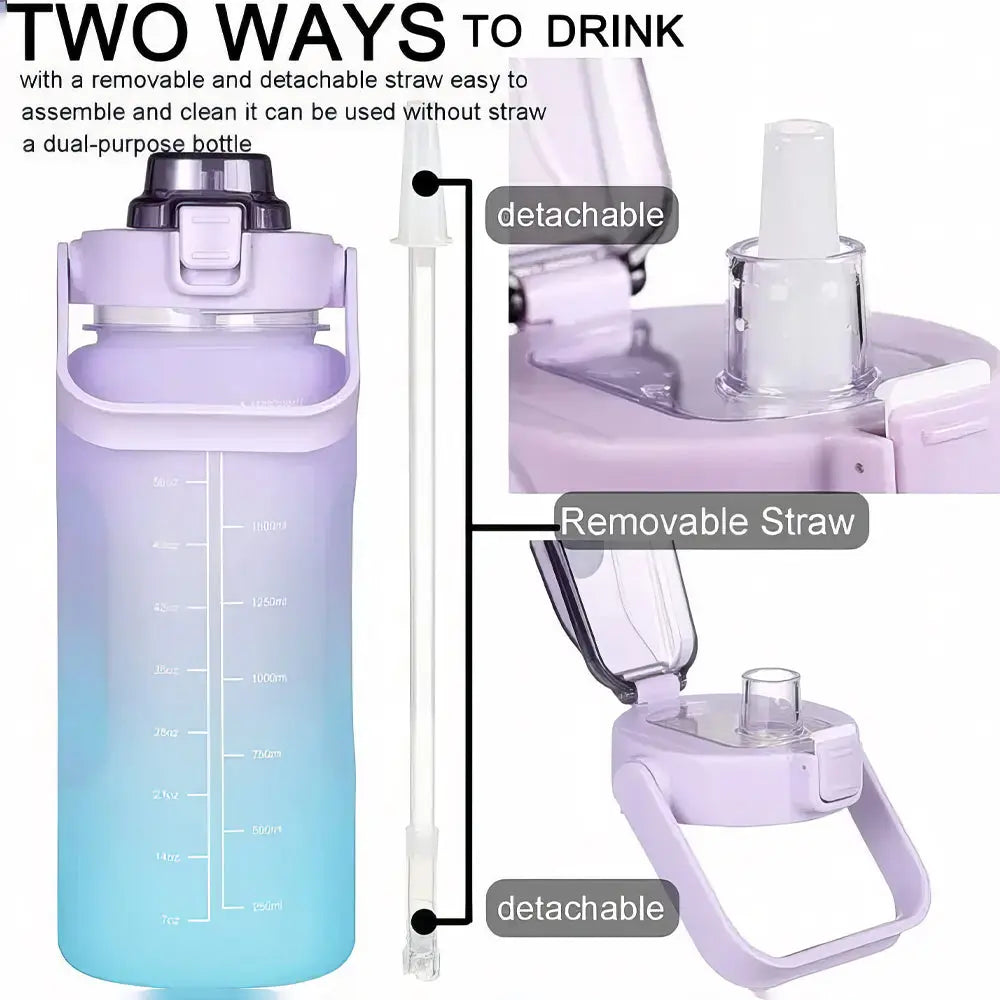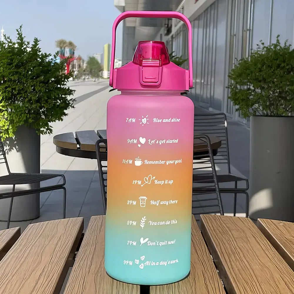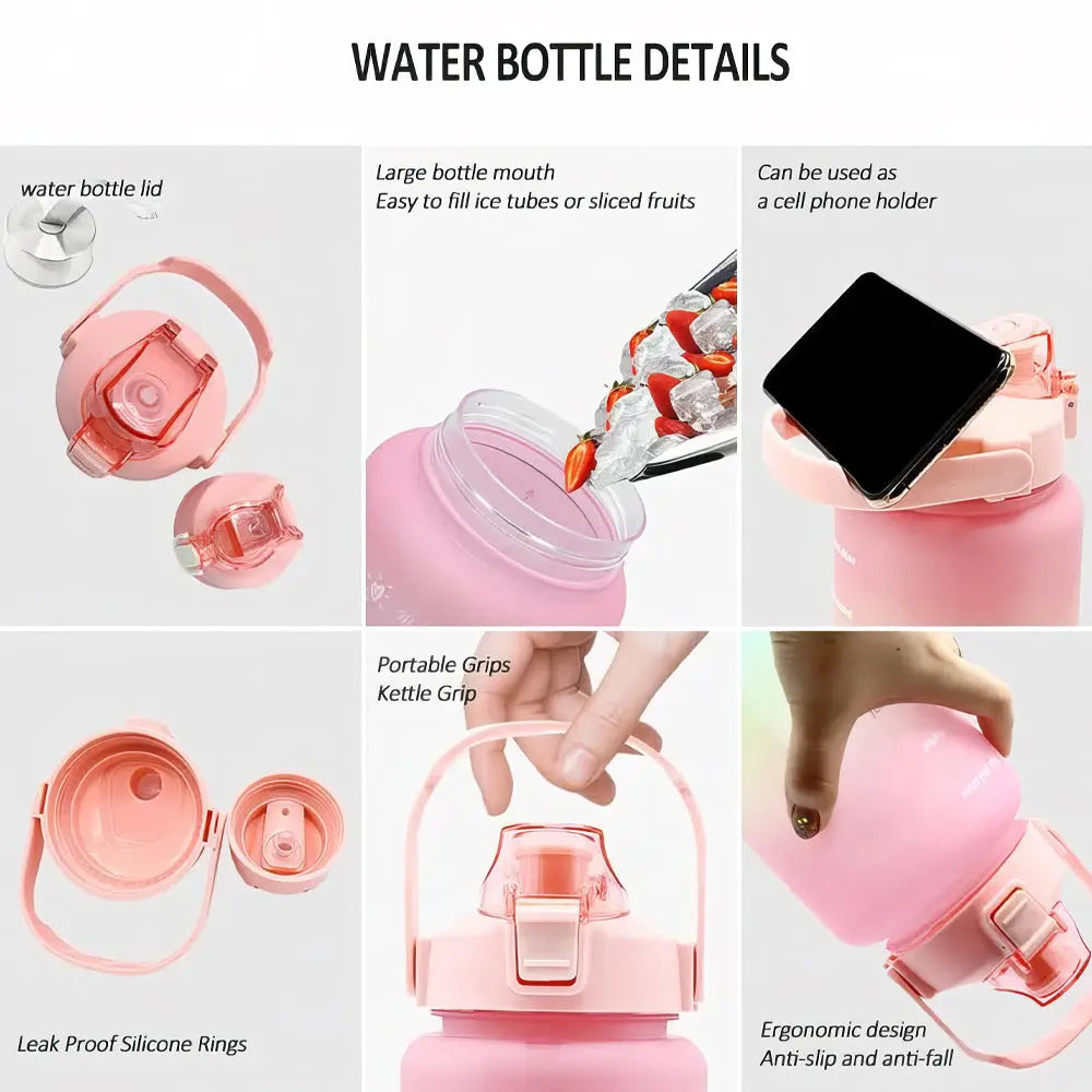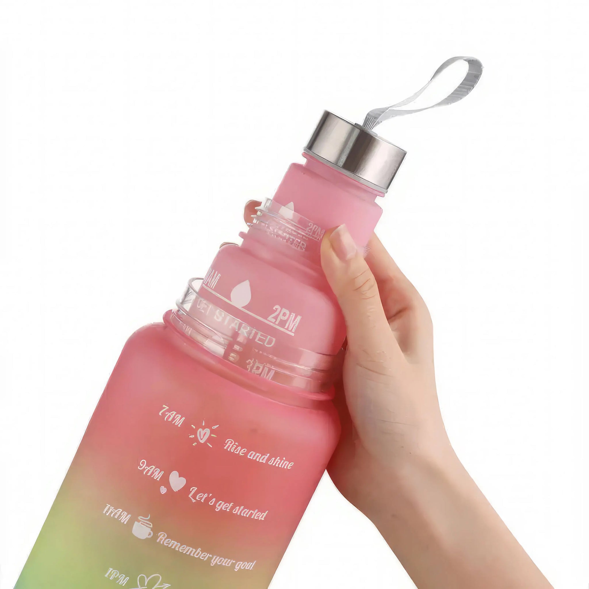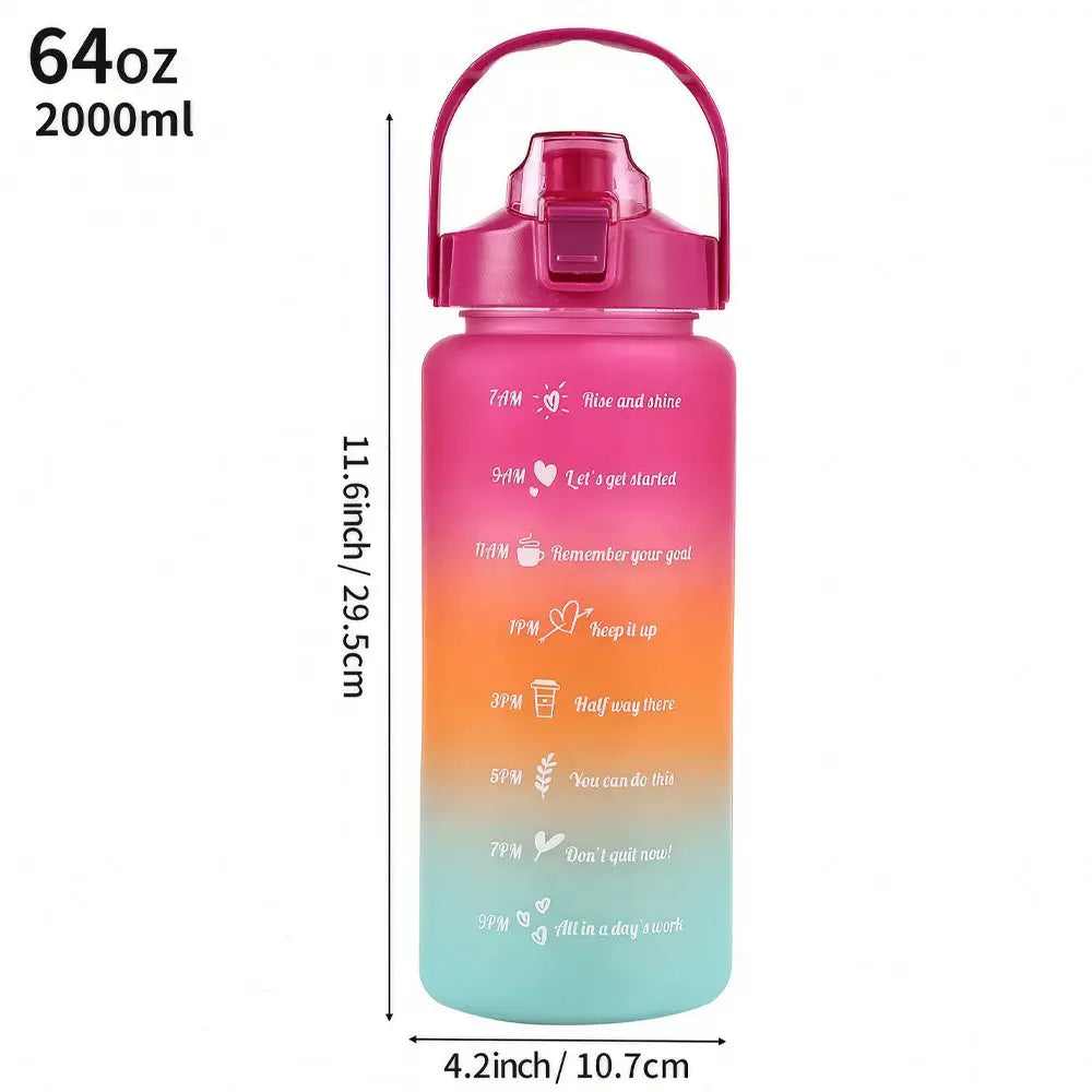 Multiple sizes available: The bottle comes in three different sizes of 300ml, 900ml, and 2000ml, making it perfect for any type of physical activity or hydration need. Easy to carry: The bottle is designed with a portable handle, making it easy to carry around whether you are out for a run or at the gym. Durable material: Made with high-quality materials, the bottle is durable and can withstand the rigors of an active lifestyle. Sleek design: The frosted finish of the bottle gives it a sleek and modern look that is perfect for any style. Leak-proof: The bottle is designed with a secure lid that prevents leaks, allowing you to stay hydrated without worrying about spills or messes.