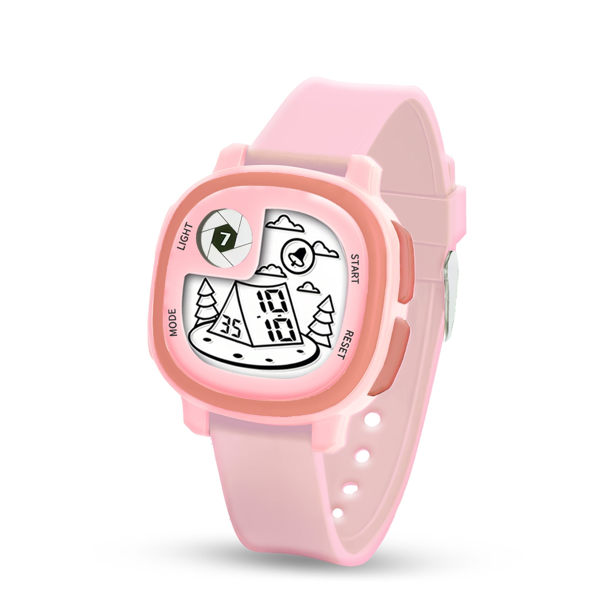 Lookhaa Cute Digital Multifunctional Stylish Dial LCD Watch with High Quality Silicone Strap Kids Digital Watch - For Girl (Pink)